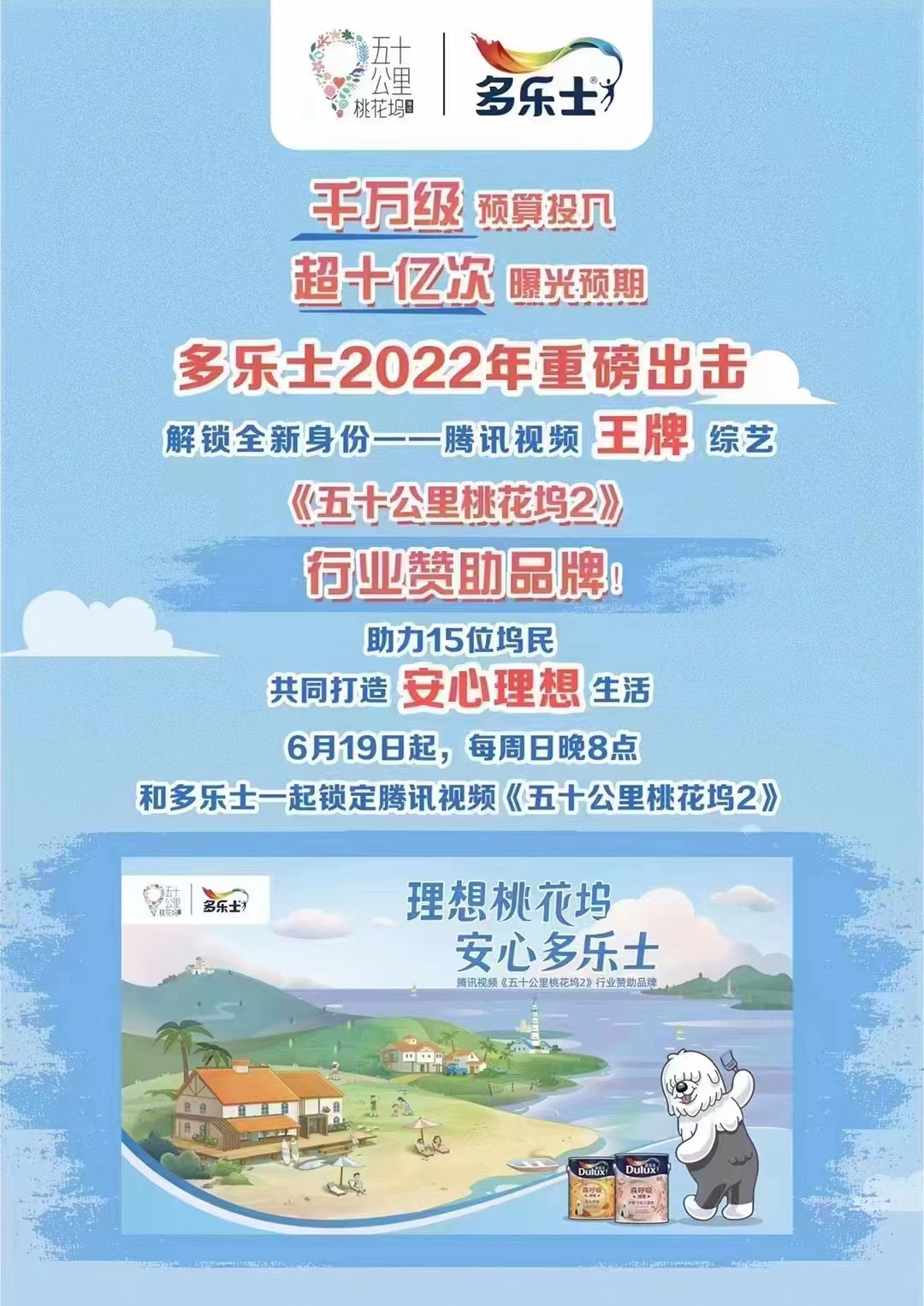騰訊王牌綜藝《五十公里桃花塢2》行業(yè)贊助商 6月19日起每周日晚8點(diǎn) 與多多一起 鎖定騰訊視頻 走進(jìn)理想桃花塢 感受安心多樂(lè)士